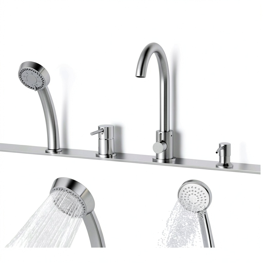 - All-in-one grooming tools including faucet, sprayer, and storage rack