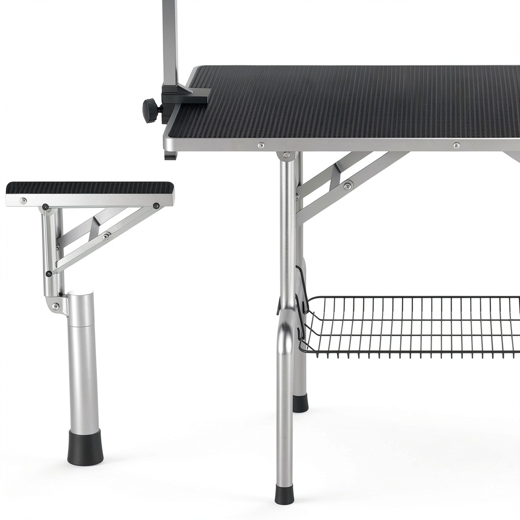 This grooming table is suitable for both professional groomers and pet owners at home, providing a secure platform for bathing, brushing, and trimming. It can be used in veterinary clinics, pet salons, or residential settings where space is limited, thanks to its foldable nature. The adjustable arm ensures comfort for dogs ranging from small to large breeds, making it versatile for daily grooming routines or occasional maintenance. Its sturdy build handles active pets, reducing the risk of slips or injuries during use.
