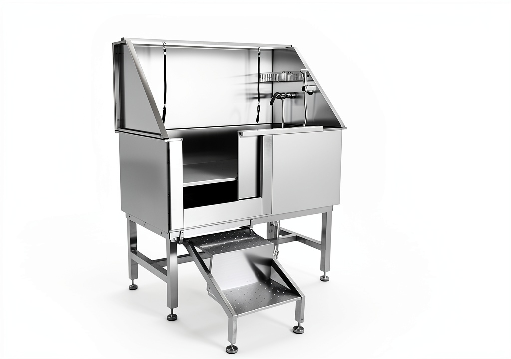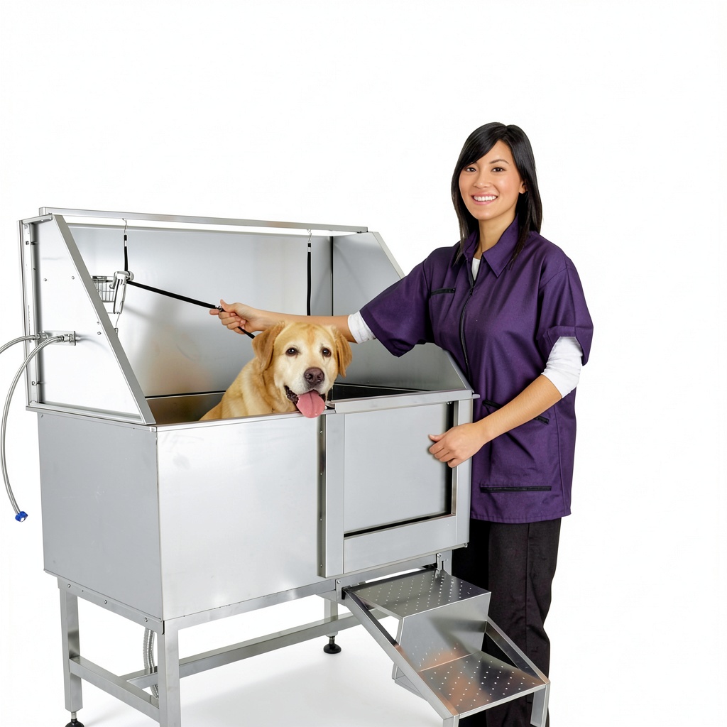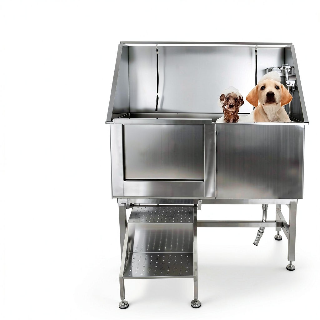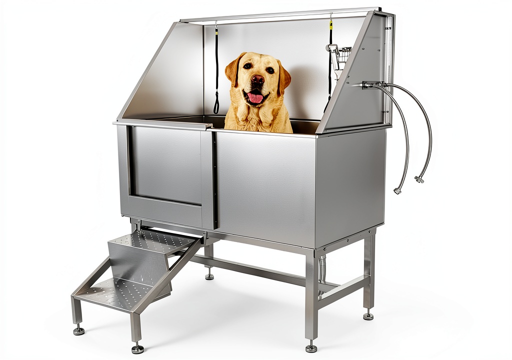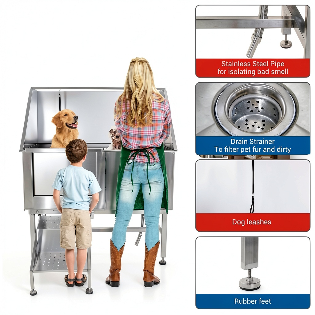 This pet wash station is ideal for home use by pet owners seeking a convenient, safe bathing solution for large breeds, as well as for professional groomers in salons or veterinary clinics. It accommodates pets of various sizes, from cats to large dogs, and is designed for regular grooming sessions to maintain hygiene and comfort. The adjustable height and non-slip features make it suitable for households with limited space or those requiring a stable, odor-resistant setup, ensuring efficient cleaning without causing stress to the animal.